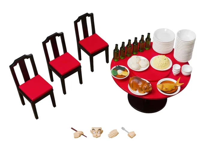 From Bandai’s S.H.Figuarts figure line comes an accessory set so you can recreate Goku’s gluttonous dining scenes from Dragon Ball Z! The set includes a table, three chairs, and tons of food and drinks so Goku can stuff his face! Speaking of, the set also includes a food-gulping expression part for the separately sold