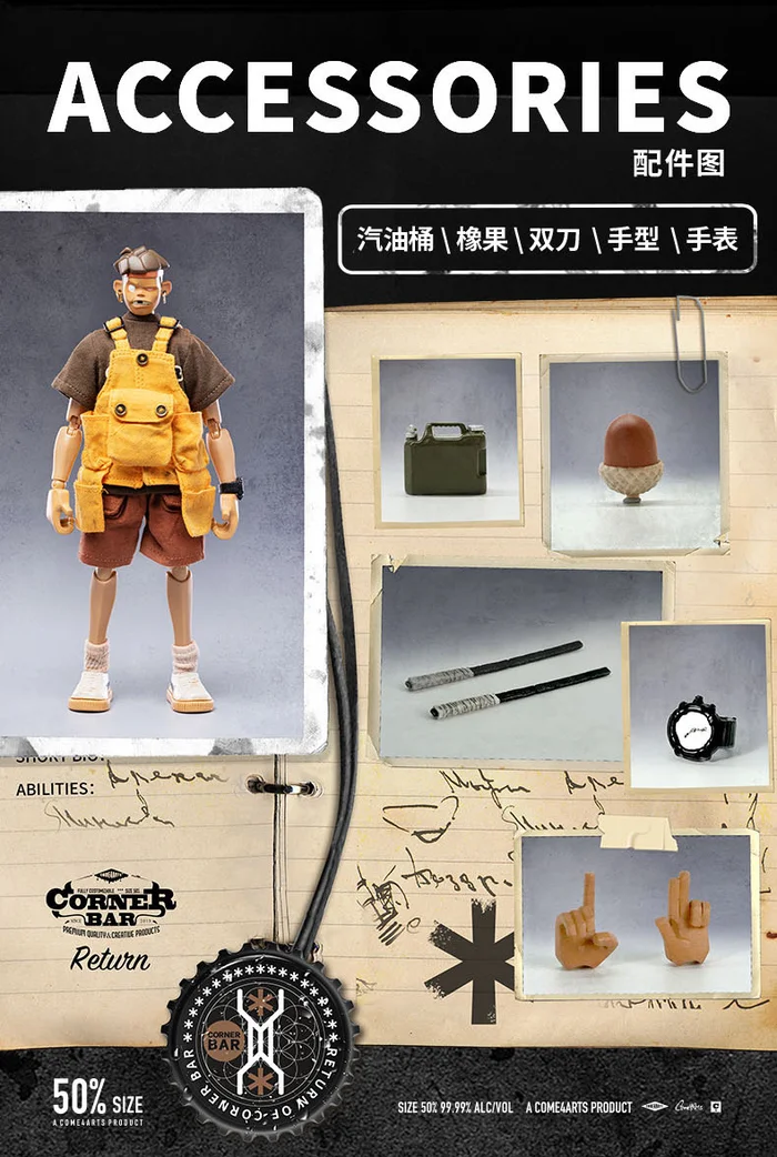 From COME4ARTS comes a new line of 1/9 scale action figures with the Corner Bar series, and joining this time is character Memg. Measuring 7.9″ tall, he’s dressed in a real fabric outfit, features full articulation, and comes with a gas can, acorn, two batons, a watch, and interchangeable hand parts so you can recreate a variety of poses. Display him together with the other characters also available to complete the set!