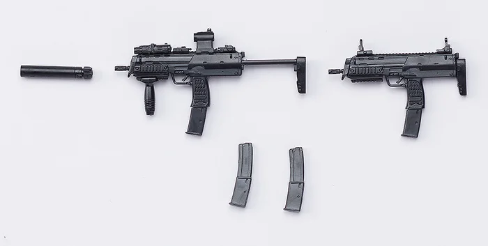 - A plastic model runner kit for a Special Forces Submachine Gun is included. Parts are included for both a version of the gun with stock extended and a version with the stock retracted. The model is limited to the figma release and features a different color from its “Little Armory” series counterpart. It includes a dot sight and suppressor as optional parts to attach to the weapon.