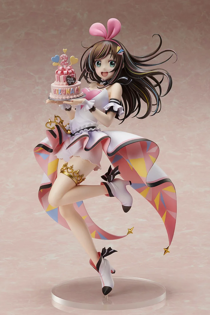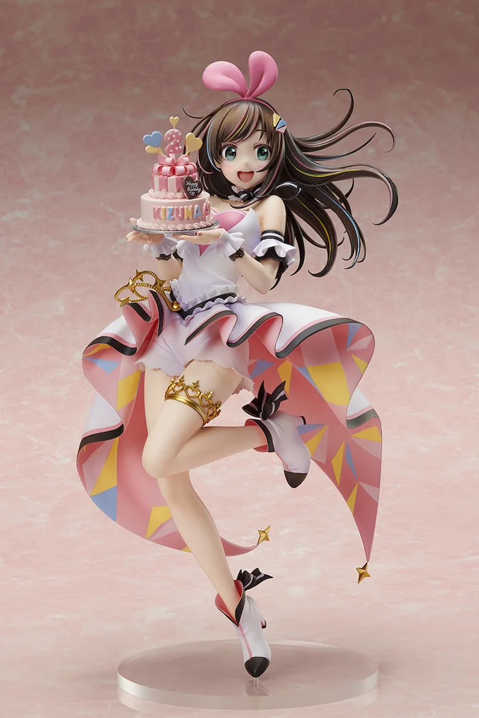 The key visual “A.I. Party! ~Birthday with U~” of the virtual YouTuber Kizuna AI specially drawn by En Morikura for her second year anniversary on her birthday, June 30, 2018, has been made into a figure by Stronger with sculpting by Shigure! She has a lively pose and expression with carefully sculpted details on her pastel-rainbow streaked hair, flowing star-tipped skirt, and multi-layered ribbon cake complete with her name and cake pops, one being a “2”! She stands 9.4” and is a must have for fans!