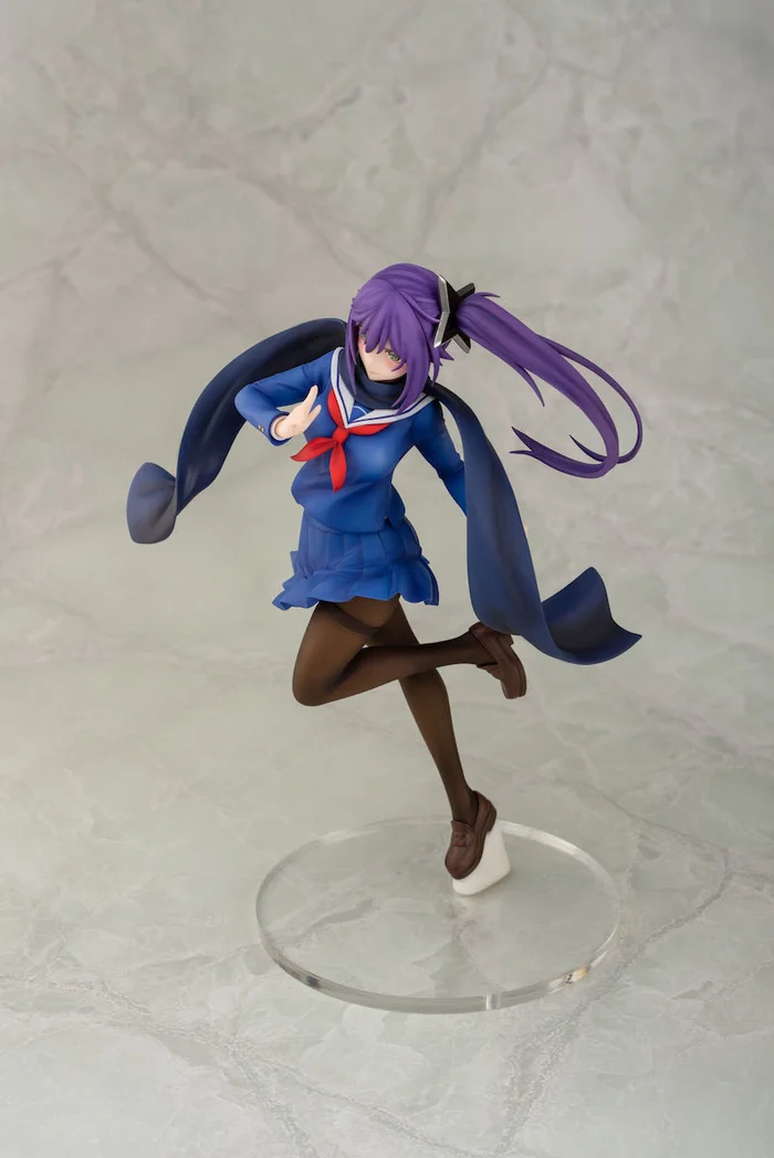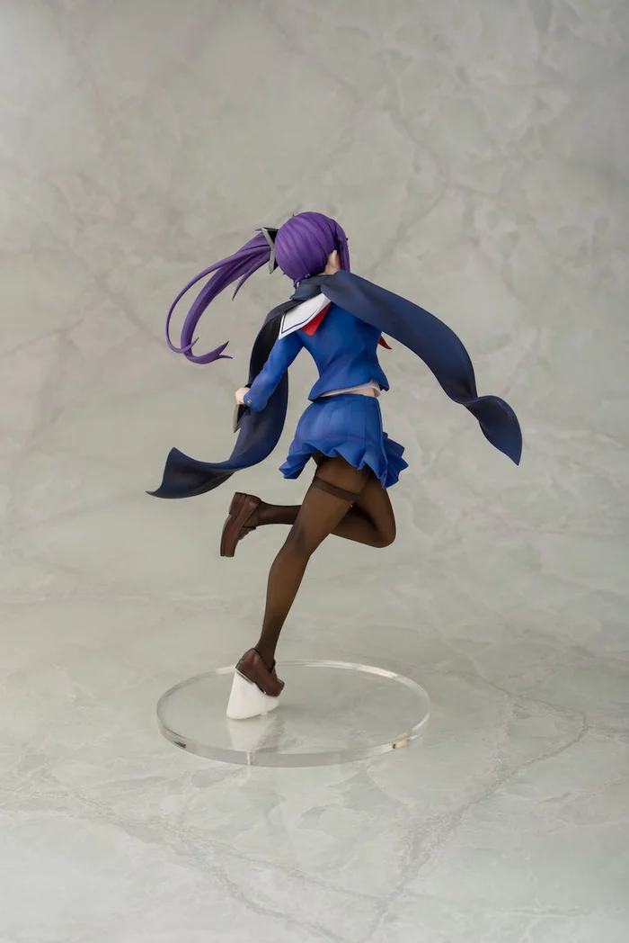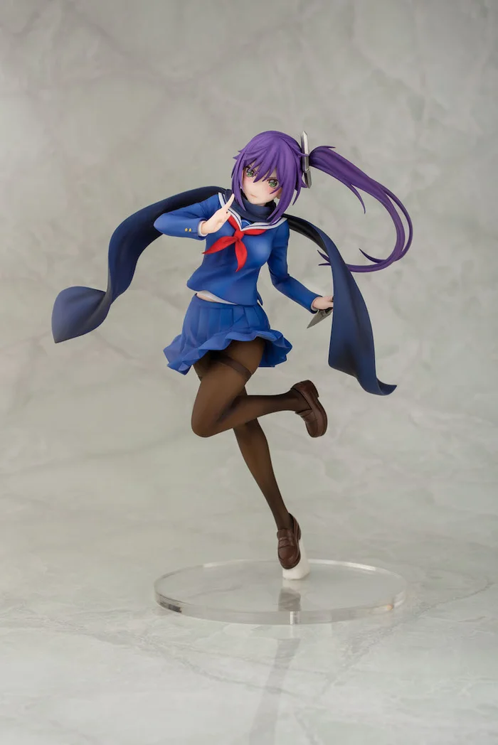From Chara-Ani (Toy’s Works) comes this Yuuna and the Haunted Hot Springs figure of Sagiri Ameno, a kunoichi from the Demon Slaying Ninja Army of the Ameno Clan. With a flustered expression, she takes a defensive stance wielding her kunai. Her hair is captured in the flow of her movement, held in her side ponytail with a shuriken. Her skirt also blows up a bit revealing the top of her thigh-highs while her blouse sways flashing a bit of her stomach. As a 1/7 scale figure she stands 9.4”.